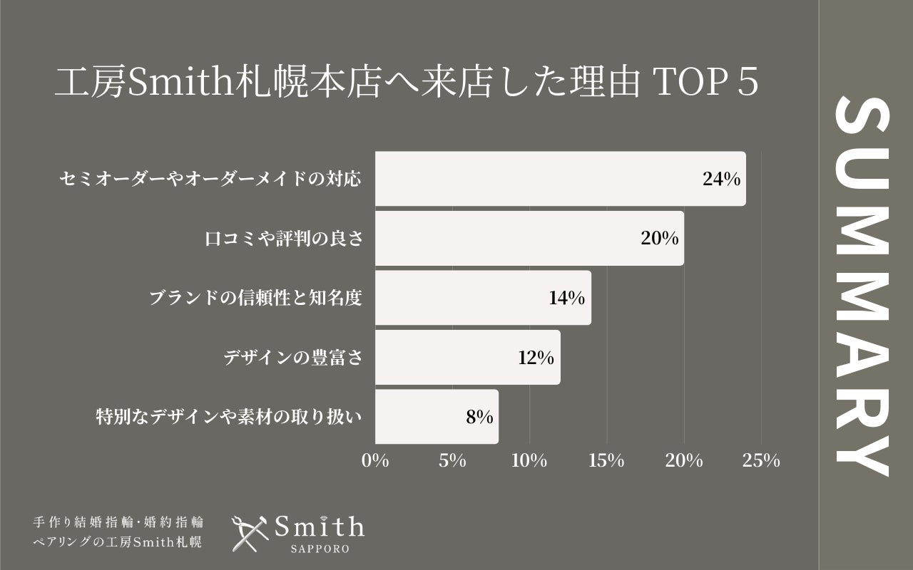 株式会社一宝(所在地:北海道札幌市)が運営する、北海道の手作り結婚指輪・婚約指輪専門店「工房Smith札幌本店」は、2025年(1月〜12月)にご来店いただいた多くのお客様の声をまとめました。 そこで、この1年間で先輩カップルが実際に選んだご予算や、お店選びの決め手となったポイントを「人気ランキング形式」で発表いたします。2025年のブライダル市場の総括として、これから指輪選びを始めるおふたりにぜひ参考にしていただきたいトレンド情報です。