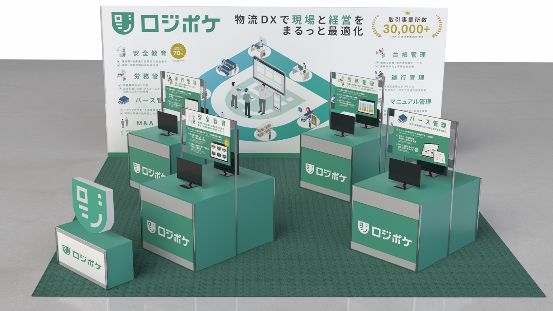 展示ブースでは、物流・倉庫業界に特化した業務改善・経営支援クラウドサービス「ロジポケ」の安全教育動画・バース管理のデモ画面を実際にお試しいただけます。