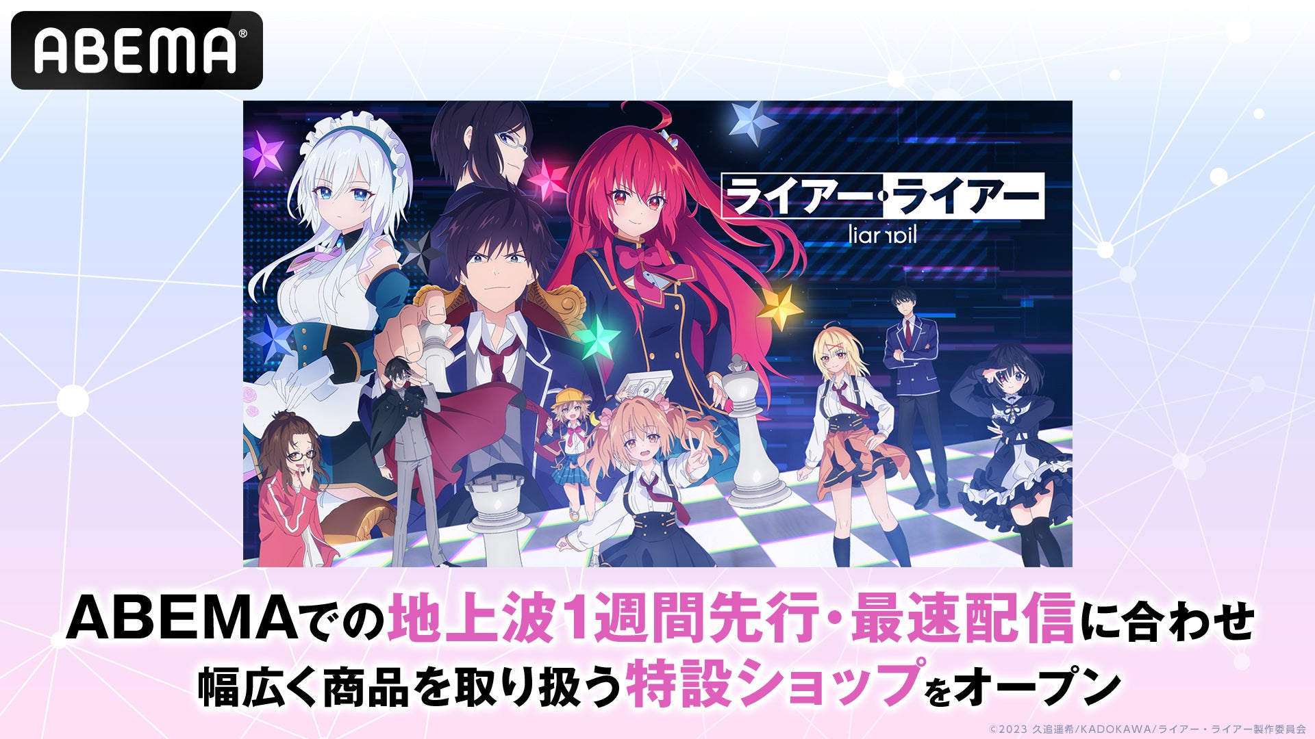 新作夏アニメ『ライアー・ライアー』「ABEMA」オリジナルの描き下ろしイラストを初公開!ABEMA公式オンラインストア「ABEMA Mart」には『ライアー・ライアー』専用特設ショップがオープン