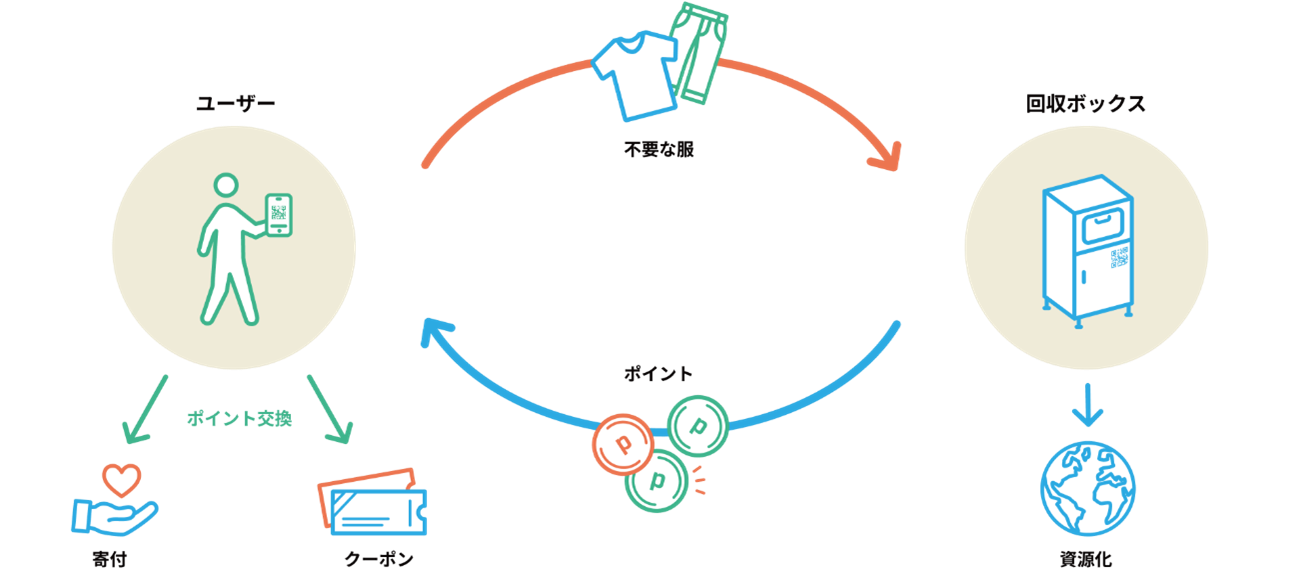本取り組みは、ITの活用を通じて「服を捨てない」ということが当たり前とされる社会を作りたいという想いから立ち上げた"ちょっといい"ことを習慣にする衣類回収サービス「するーぷ」という活動です。自分にも社会にも"ちょっといい"ことである衣類回収を「する」、この行動がループすることで循環型社会の実現を目指しています。