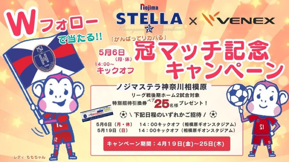 5月6日(月)ノジマステラ神奈川相模原ホーム戦「がんばってリカバる」VENEXマッチ開催決定