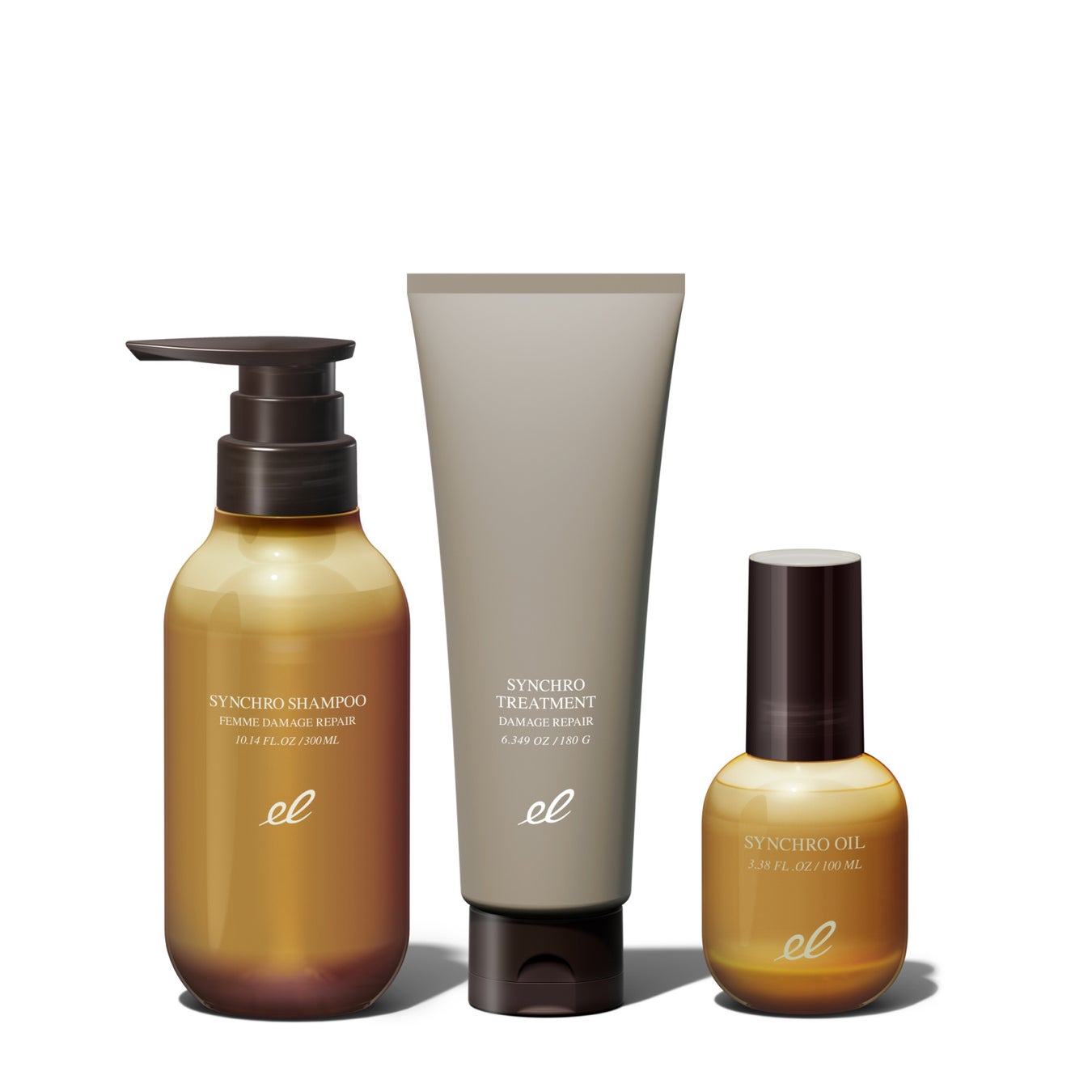 毛髪のうるおいを失った大人のダメージ毛に髪内外からアプローチし、輝くようなツヤ髪へ導くシャンプー・トリートメント・ヘアオイルがお得なセットになって登場。