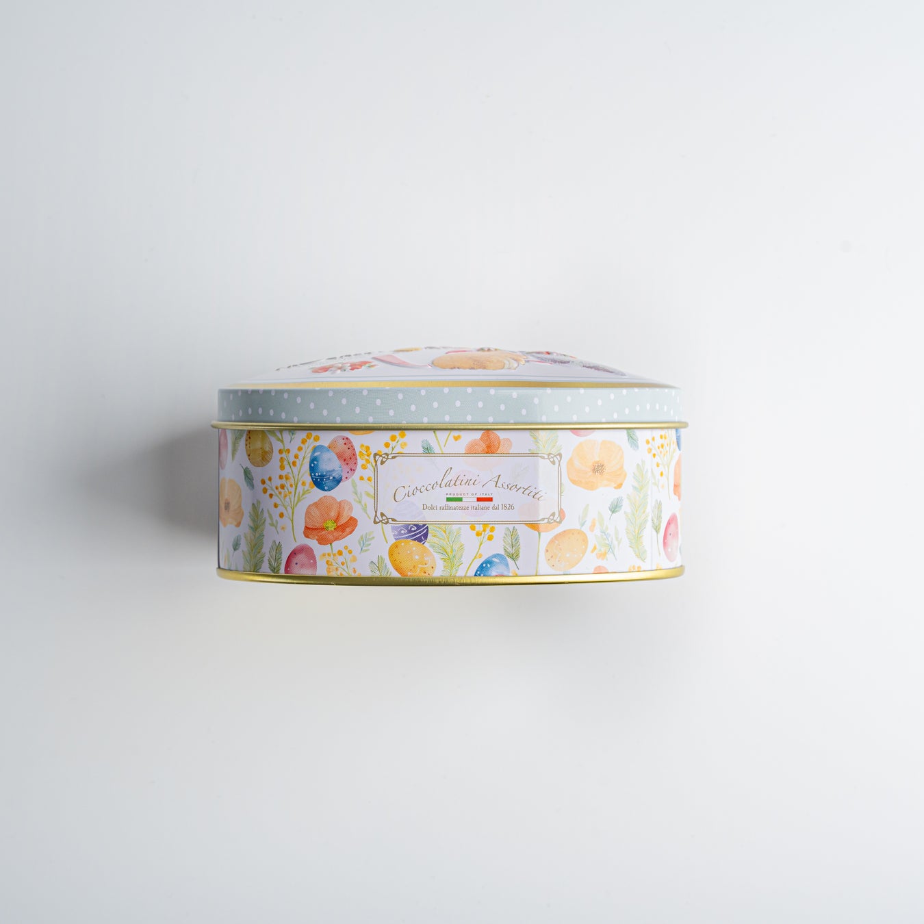 今年は春の訪れと共に花開くアネモネとミモザにイースターエッグが側面全面デザインされ、蓋にはうさぎとリボンのデザインがギフト感を高めます。蓋の側面はミニ缶はピンク色、オーバル缶は水色のドット柄が配置され、横から見ても春を感じる華やかなコレクションです。