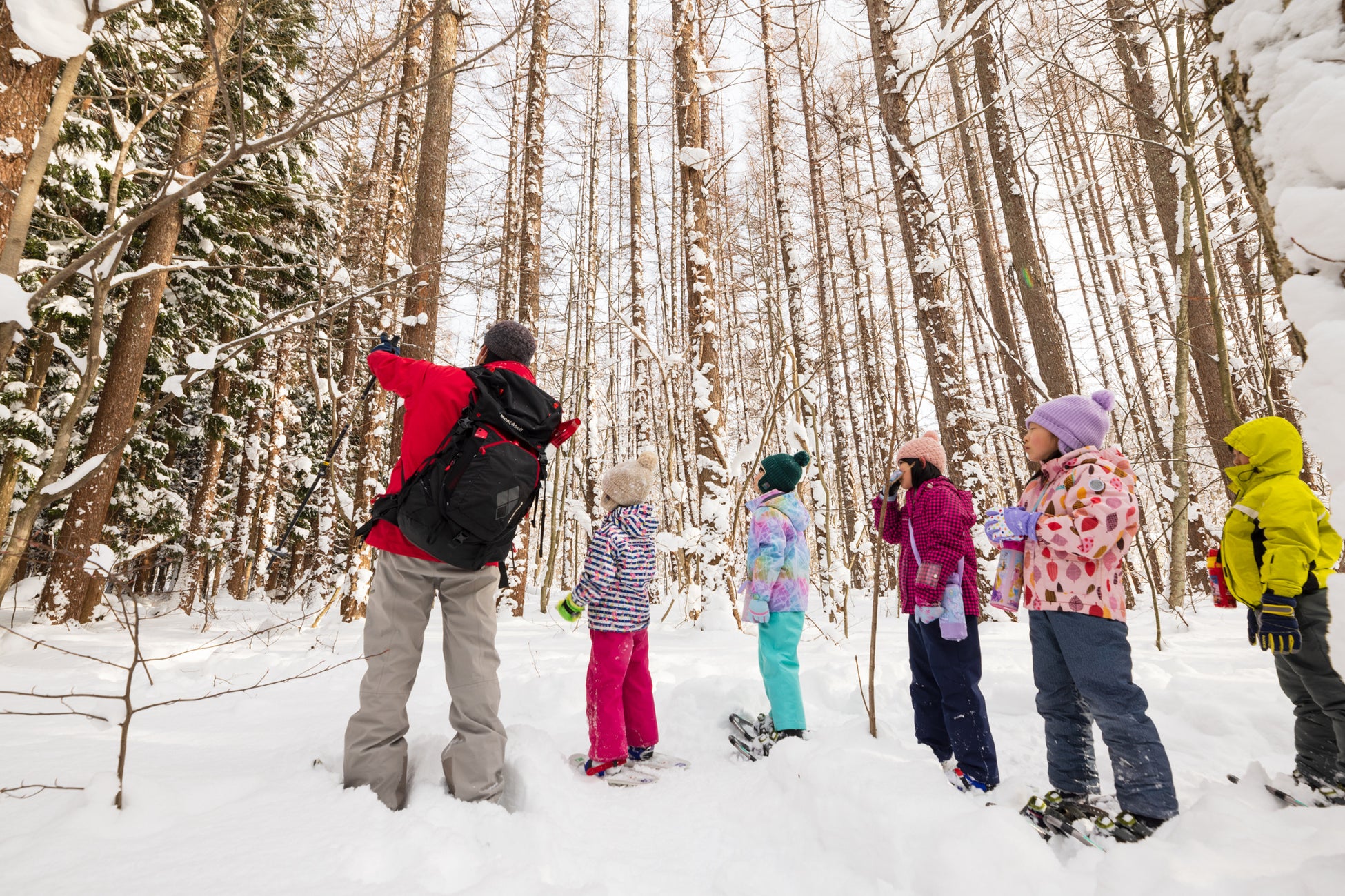 その日の天候や雪質などコンディションを判断してガイドがオススメの散策コースを案内します。スノランブラーやスノーシューを履いて、のんびりと純白の森の中を歩き、冬ならではの出会いや気づきから自然の魅力を堪能できます。