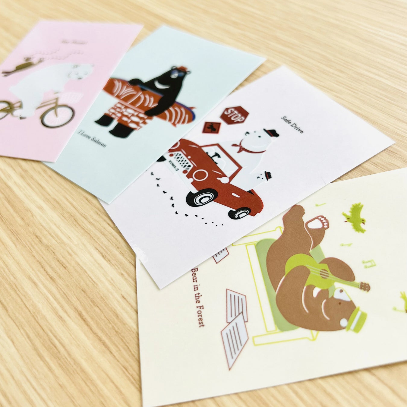ROKKAKUのはがき製品は、舞妓さんや和の風物など京都にまつわるデザインや、こよみごとに移り変わる植物や動物の風景が箔押しされています。