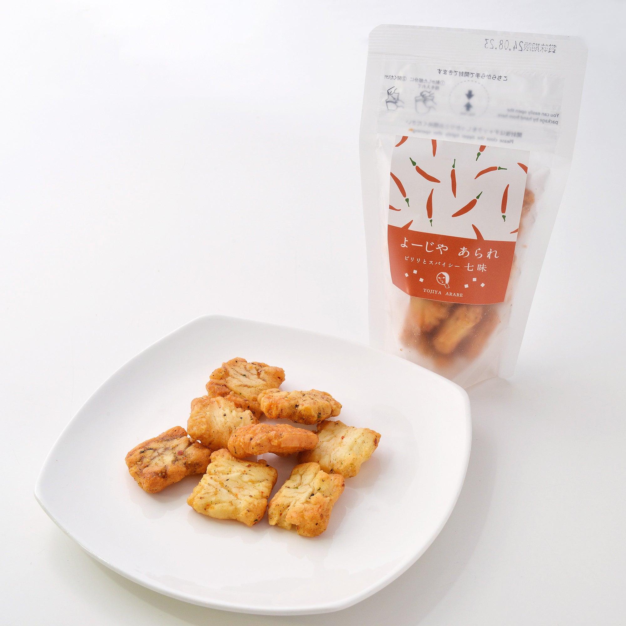 ピリッとスパイシーな「七味」味は、「あられ」に合うよう、オリジナルスパイスで味付けしました。