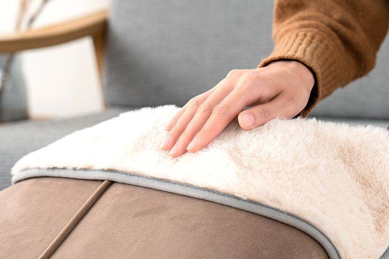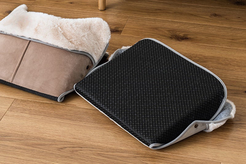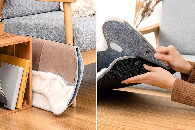 ふわふわのファーをあしらい、見た目から温かい折りたたみフットパネルヒーター。