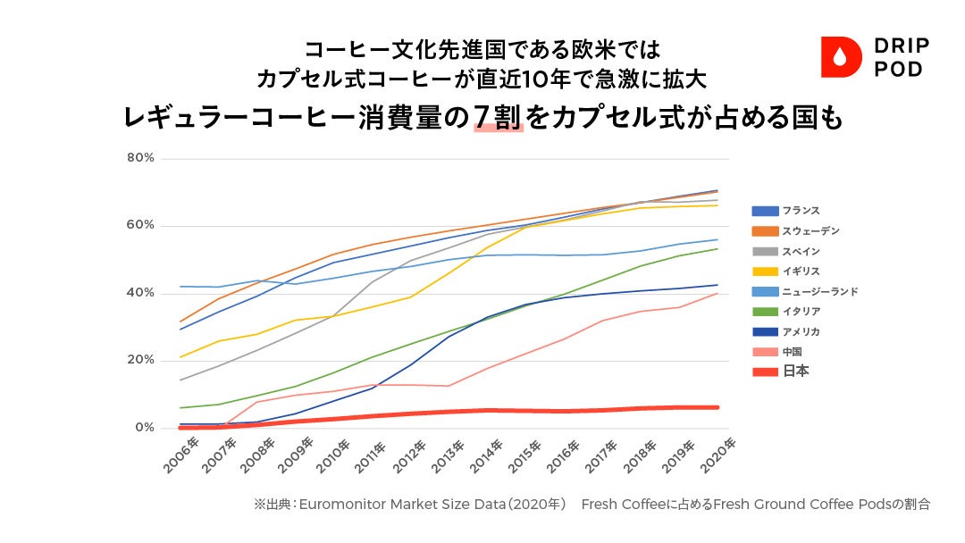 ※2 出典:Euromonitor Market Size Data(2020年) Fresh Coffeeに占めるFresh Ground Coffee Podsの割合