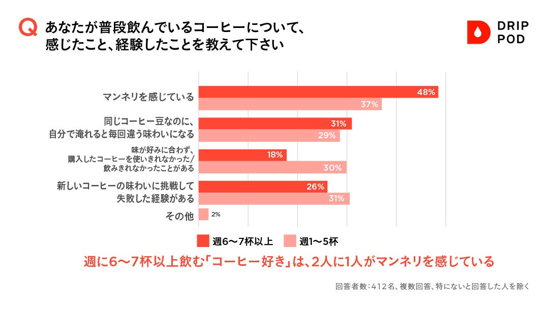 特に週に6~7杯以上飲む「コーヒー好き」は、2人に1人がマンネリを実感。