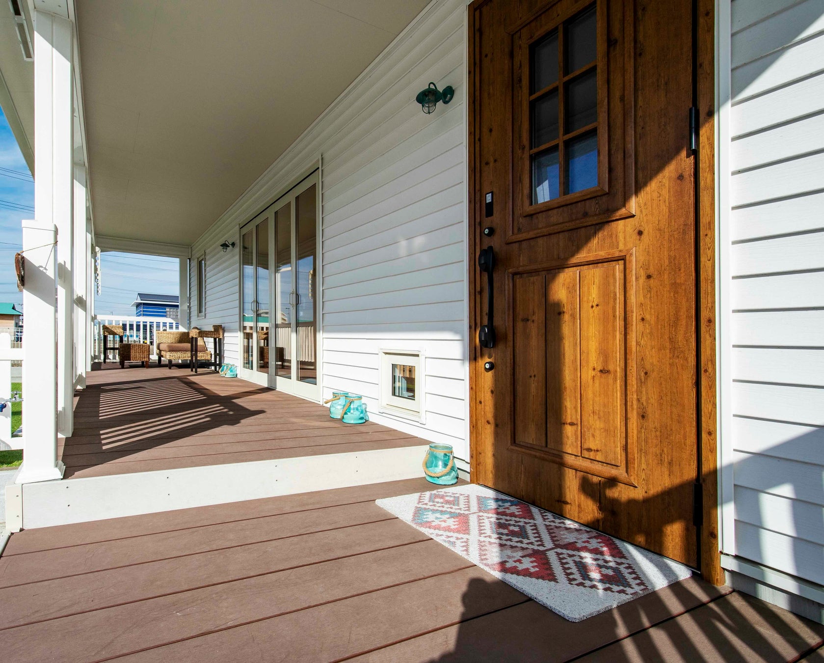 「海の家」(WoodsHill~アーリーアメリカンスタイル~)は、ラップサイディングの外観にカバードポーチを設けたアーリーアメリカンスタイルの住まいです。海から帰ってきてサーフボードを洗って立てかけておいたり、ハンモックを置いて休んだりできるカバードポーチが印象的な住まいです。