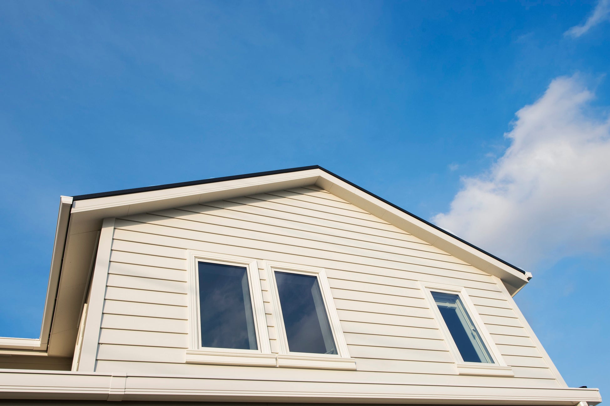 外観の特長は、細長い板を一枚ずつ重ね張りして仕上げるラップサイディングの外壁です。木の板に覆われた外壁は、自然で素朴なイメージを与えるとともに、板の重なりで生まれる陰影は、見る角度により表情を変え、飽きのこないデザインです。