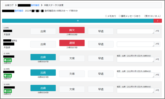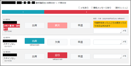 不在者の最新情報を常に共有、無断欠席者との区別も容易に