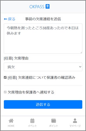 (欠席連絡はSMSで保護者宛にも通知できます)