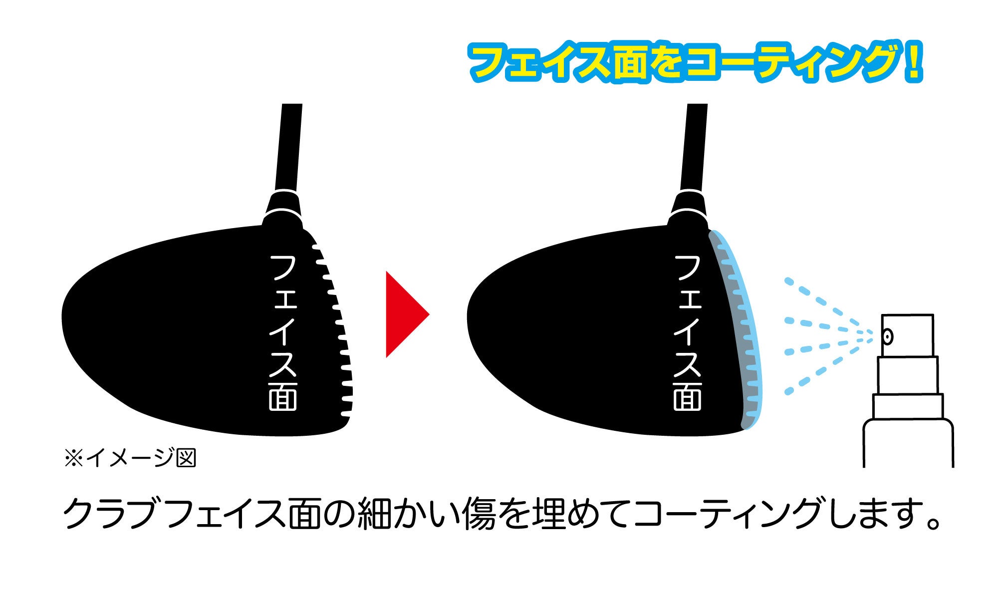 「ビッグキャリースピンオフ」をドライバーのフェイス面に塗布すると、表面に極めて薄い被膜が作られます。この被膜があることで、ドライバーにボールが当たる瞬間の摩擦係数を減らす効果が得られます。
