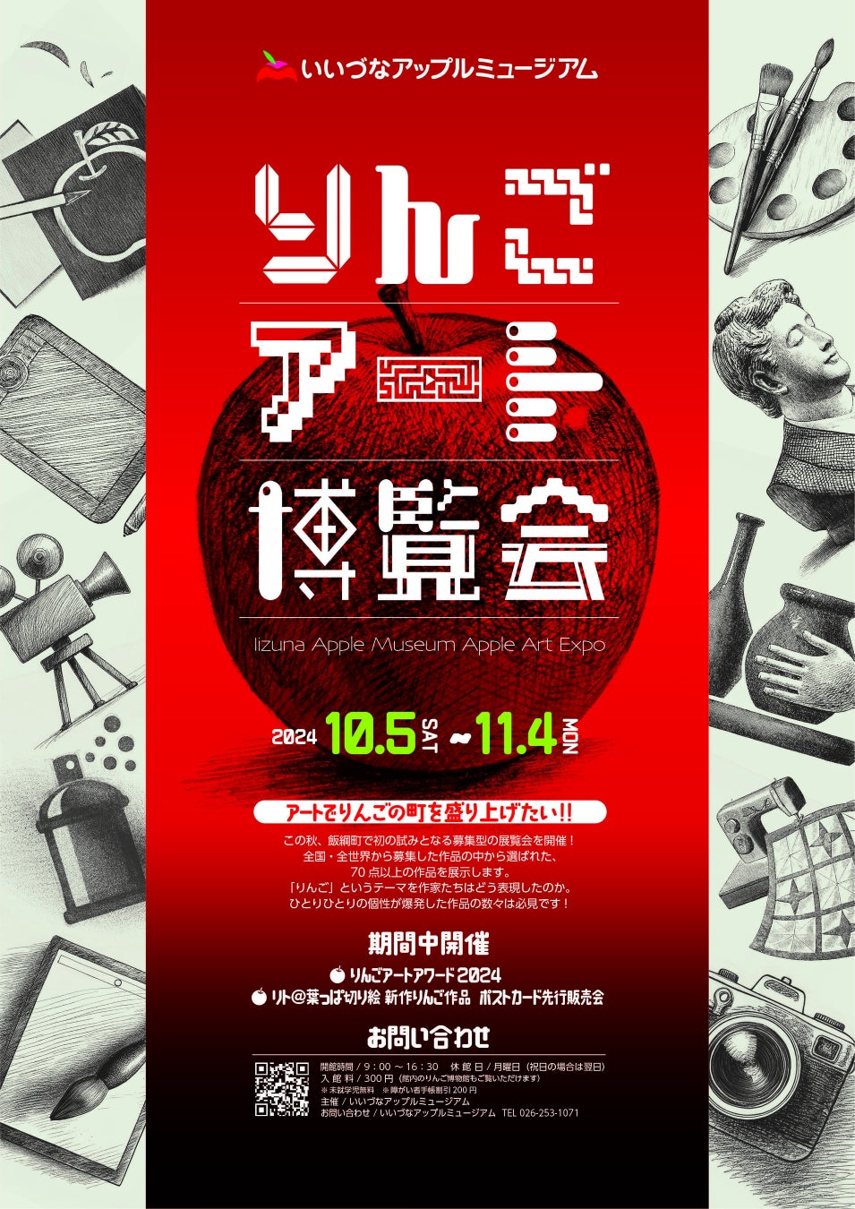 りんごづくしのちょっと変わったミュージアム「いいづなアップルミュージアム」では、2024年10月5日(土)から11月4日(月・振替休日)まで、飯綱町で初の試みとなる募集型の合同企画展「りんごアート博覧会」を開催します。