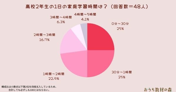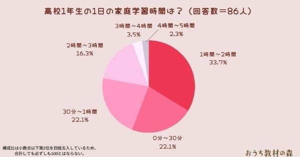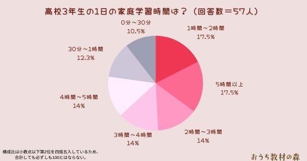 ・3時間〜4時間(8人):学校帰りに塾で2時間ほど勉強してから帰宅するので、それからの勉強は1時間ぐらいで良いと思っています。