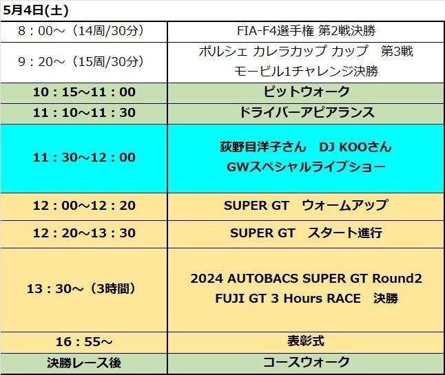 [詳細サイト] https://www.fsw.tv/motorsports/race/super-gt/2024-rd2-event.html