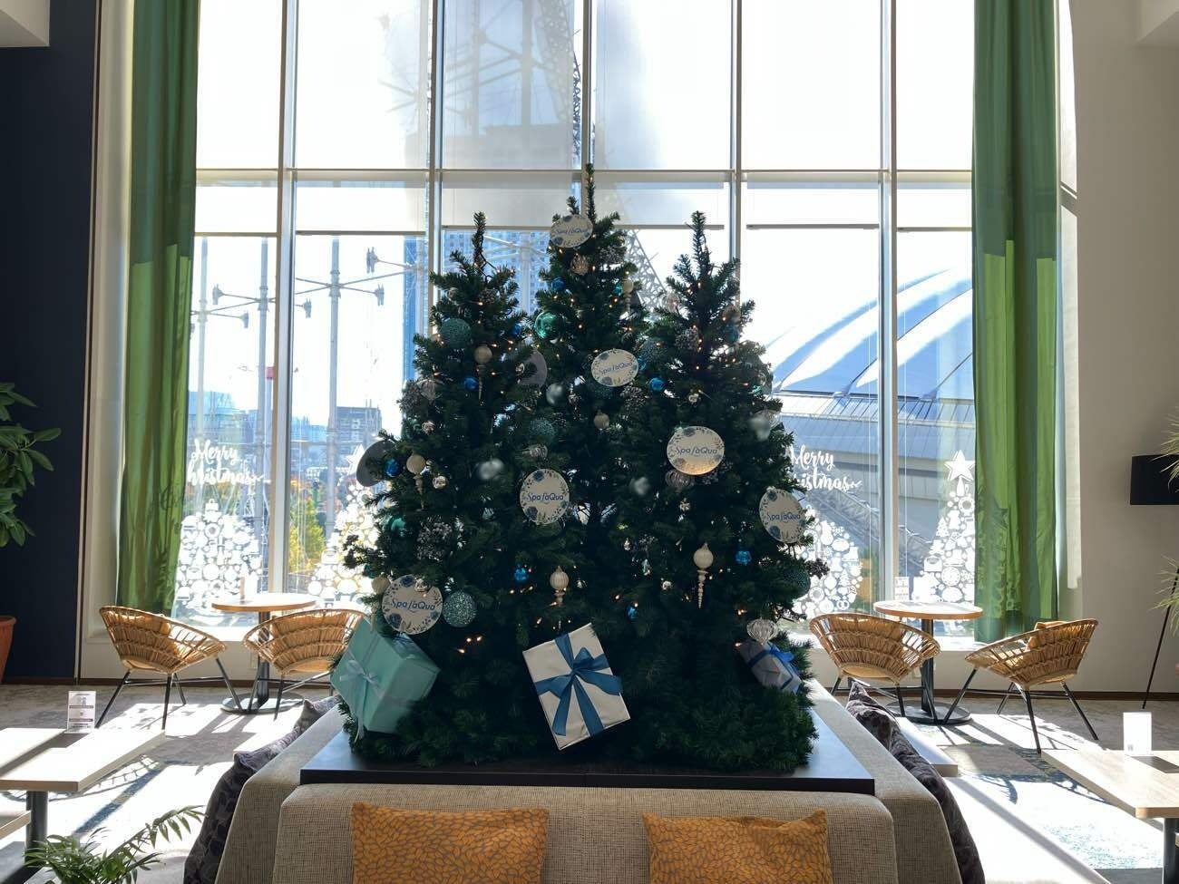 クリスマスを彩るクリスマスツリーの設置と限定ドリンクを販売