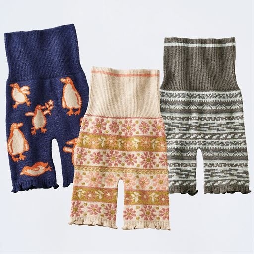 ショーツの上に重ねてあったかな腹巻き付きパンツです。すっきりはける3分丈タイプ。キュートな「ペンギン柄」と華やかな「花柄」、使いやすい「ボーダー柄」の3柄展開。ペンギン柄は前後で柄が異なります。