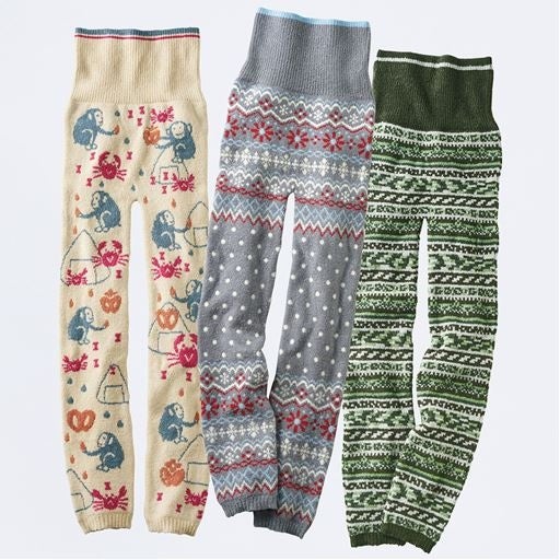 10分丈で足全体を温めます。お客様のご要望にお応えし、サイズ展開を増やしました。足口が伸びにくい仕様にもこだわっています。かわいい「さるとかに柄」、冬らしい「ノルディック柄」、シンプルな「ボーダー柄」の3種類をご用意しました。さるとかに柄は前後で柄が異なります。
