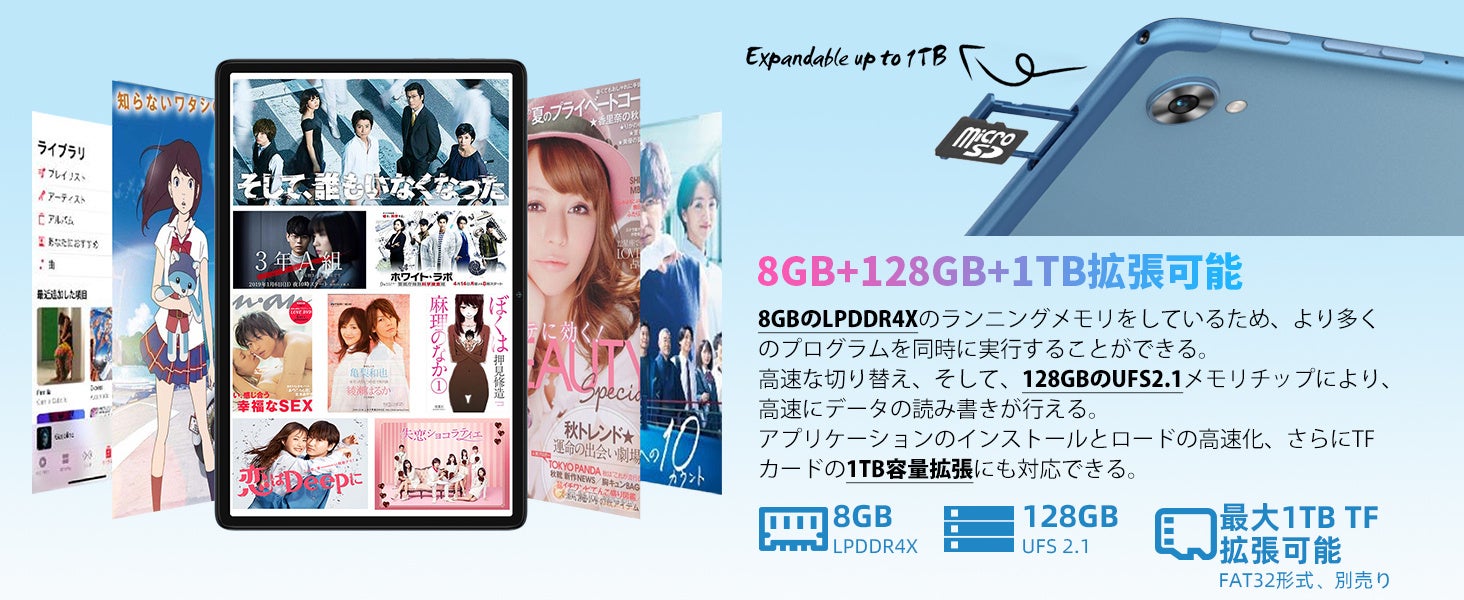 802.11ac仕様のデュアルバンドWiFiネットワークに対応し、ネットワークの世界でスッキリ楽しむことができます。Bluetooth 5.0の低消費電力転送により、タブレットの可能性を広げます。2.4G+5GデュアルバンドWiFiとBluetoothに対応するほか、GPS、グロナスとガリレオの3大衛星測位システムにも対応し、より正確なナビゲーションサービスを提供します。