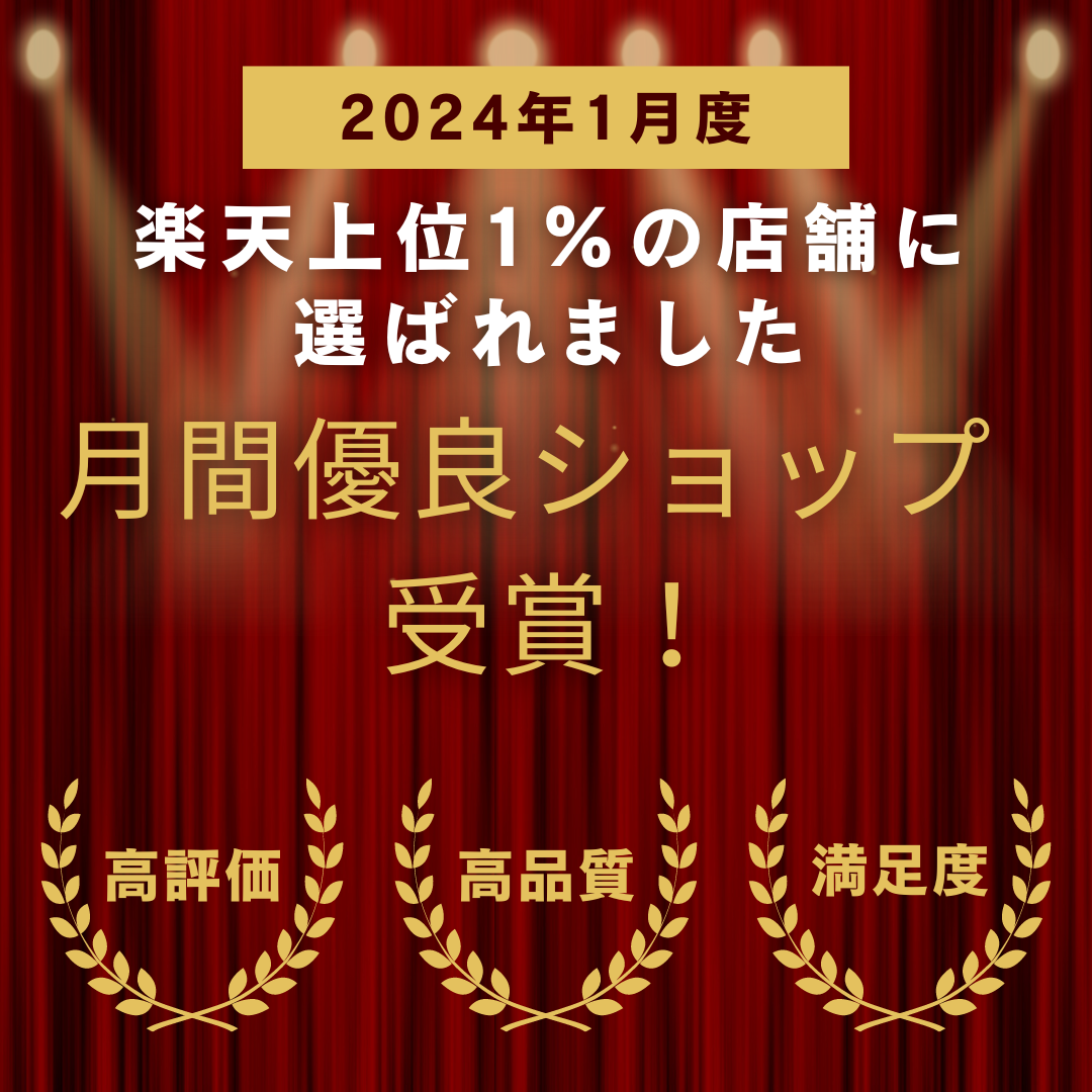 月間優良ショップ(ショップオブザマンス)とは、楽天株式会社が出店店舗の中から選出する月間MVPの事です。ユーザーから高い評価を得た楽天市場内の出店店舗約55,000店の上位1%が受賞出来ます。