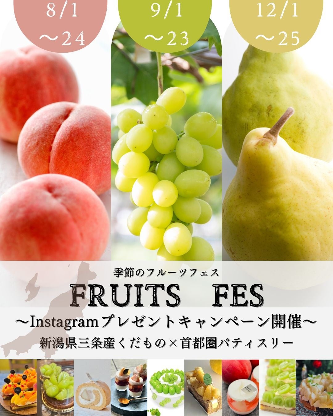 8月1日(金)から、首都圏の人気パティスリーが、旬の三条産フルーツを使った限定スイーツを販売します。あわせて、指定のハッシュタグを付けて限定スイーツの写真をInstagramに投稿すると、抽選で三条市の特産品が当たるプレゼントキャンペーンを開催します。