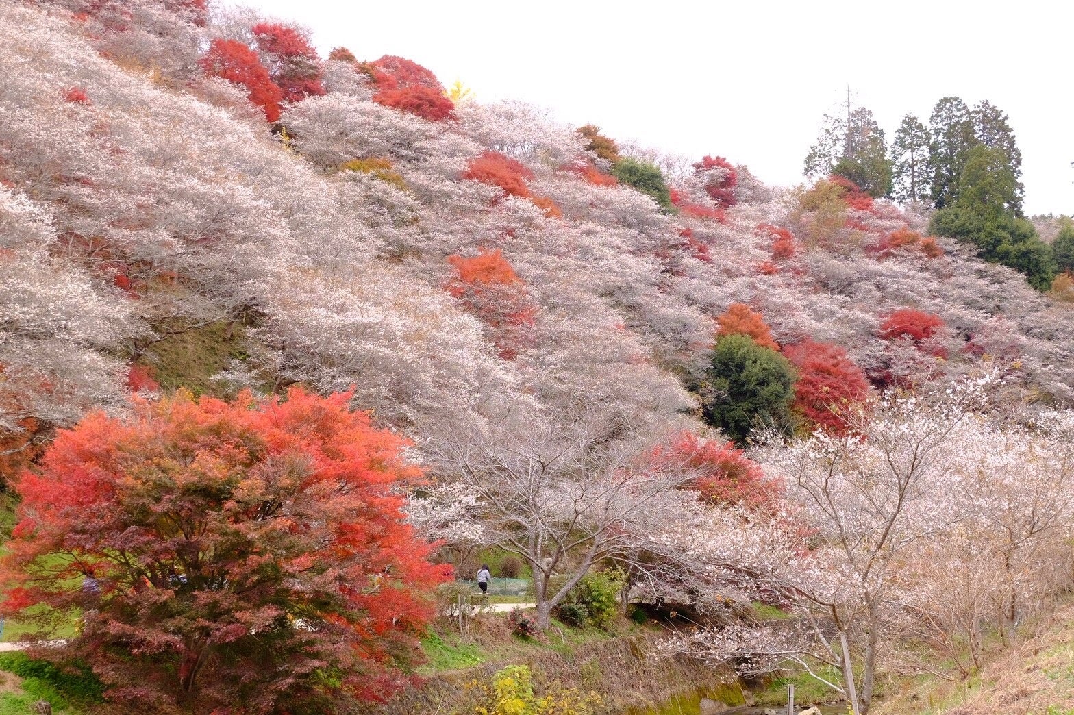 …約1,200本の山桜と紅葉のコントラストが圧巻