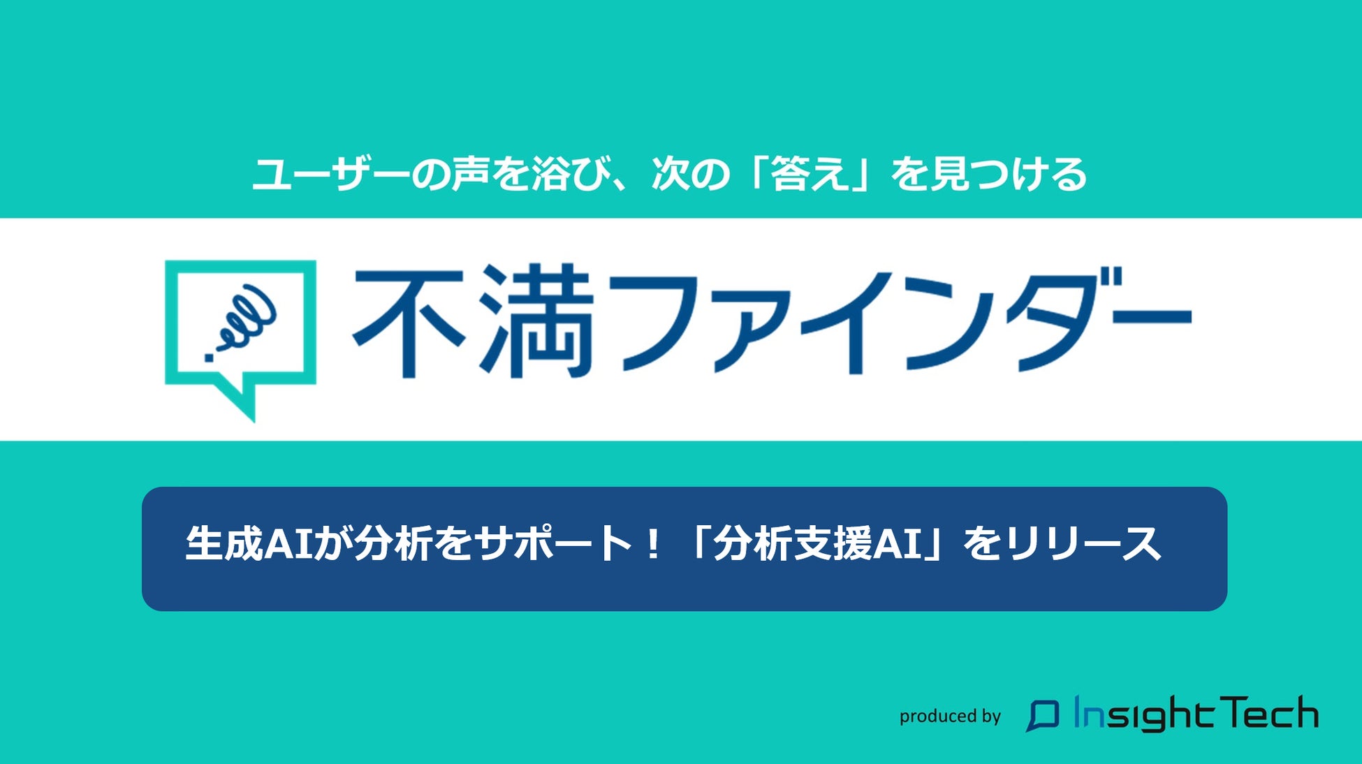 今回の新機能リリースは「分析支援AI」の第一弾となります。引き続き「分析結果の解釈サポート」や「生活者が求める商品・サービスの提案」など、不満からイノベーションの種を見つけやすくする新機能の開発を進めて参ります。