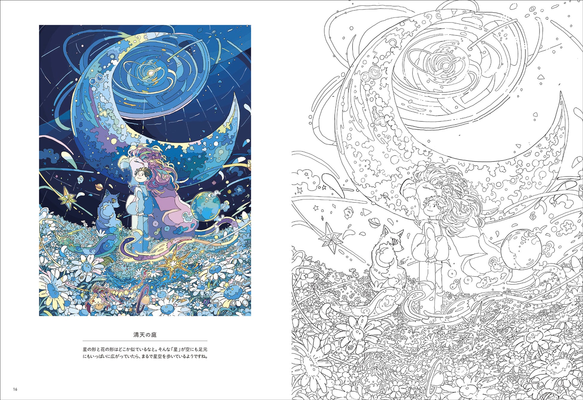 やさしい青に満ちた、どこか切ない世界観のイラストを得意とし、SNSを中心に注目を集める新進気鋭のイラストレーター・ならのによる初の塗り絵ブック。