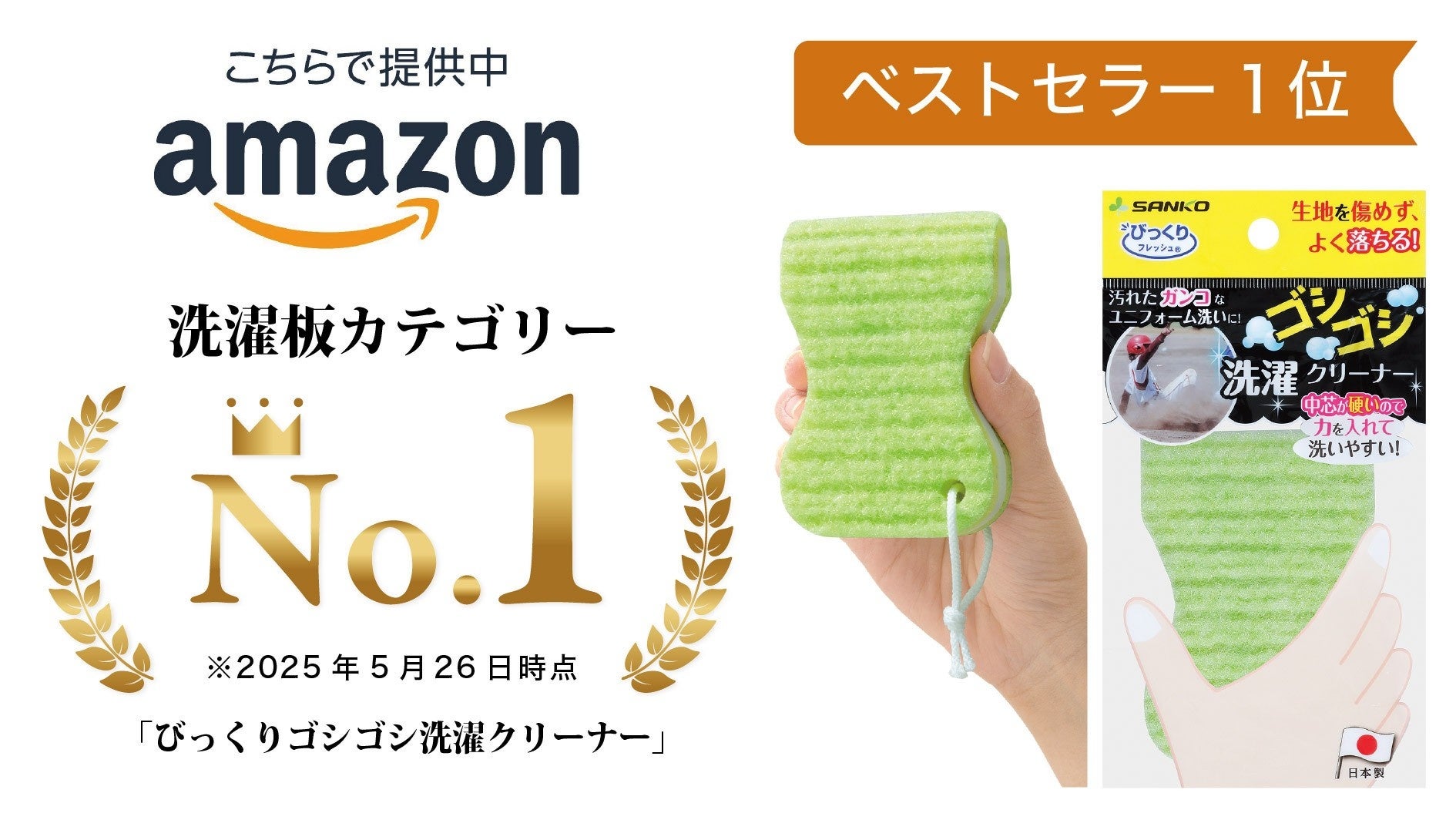 掃除・防災・ペット用品を中心に、生活サポート用品の商品開発から製造、販売までを一気通貫して提供する株式会社サンコー(本社:和歌山県海南市、代表取締役:角谷太基)は、洗濯用品「びっくりゴシゴシ洗濯クリーナー」が、Amazonの洗濯板カテゴリーにおいて、ベストセラー1位を獲得したことをお知らせします。※2025年5月26日時点