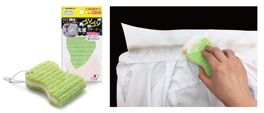 そんな季節にピッタリなのが、当社の「びっくりゴシゴシ洗濯クリーナー」です。本商品は、異形断面のポリエステル繊維で、水だけでも汚れをかき出すことができる「びっくりフレッシュ®」を採用しているほか、泥汚れやしつこい汚れ落としに強い両面クリーナー構造を採用し、手にフィットする握りやすい形状で、力を入れて効率よく汚れを落とすことができます。