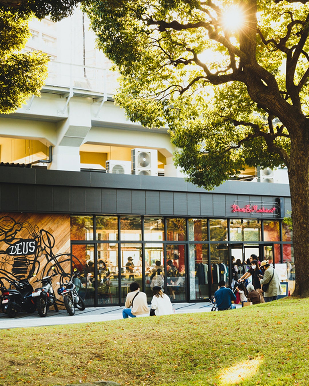 デウス浅草店は、目の前に隅田公園が広がるロケーション。アナログ盤の温かい音色に包まれながら、ビール、音楽、ショッピング、ランチを昼間から楽しめる開放的な空間です。世界が認めるトップDJが集う、浅草ならではの特別な日曜日をぜひご体験ください。