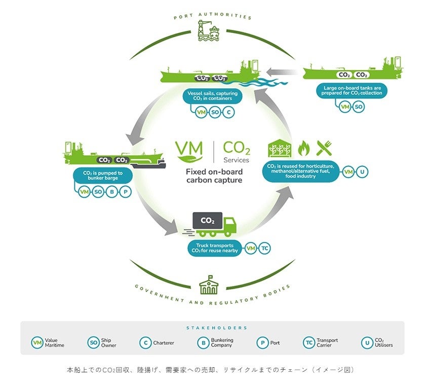 2017年設立の船舶向けCO2回収技術の開発を手掛けるオランダのエンジニアリング企業。GHGフットプリント(商品やサービスがGHGをどれだけ生み出しているかの指標)の減少を通じた海運業界全体の持続可能性向上への貢献をビジョンに掲げ、船主やオペレーターの競争力向上を支援している。公式サイト: https://valuemaritime.com/