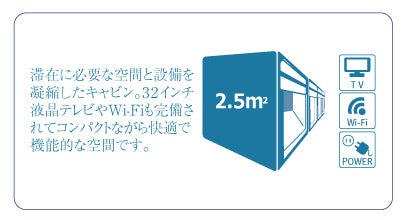 ※旅館業法上「簡易宿所」として営業いたしますので、各キャビンの出入り口に施錠することはできません。