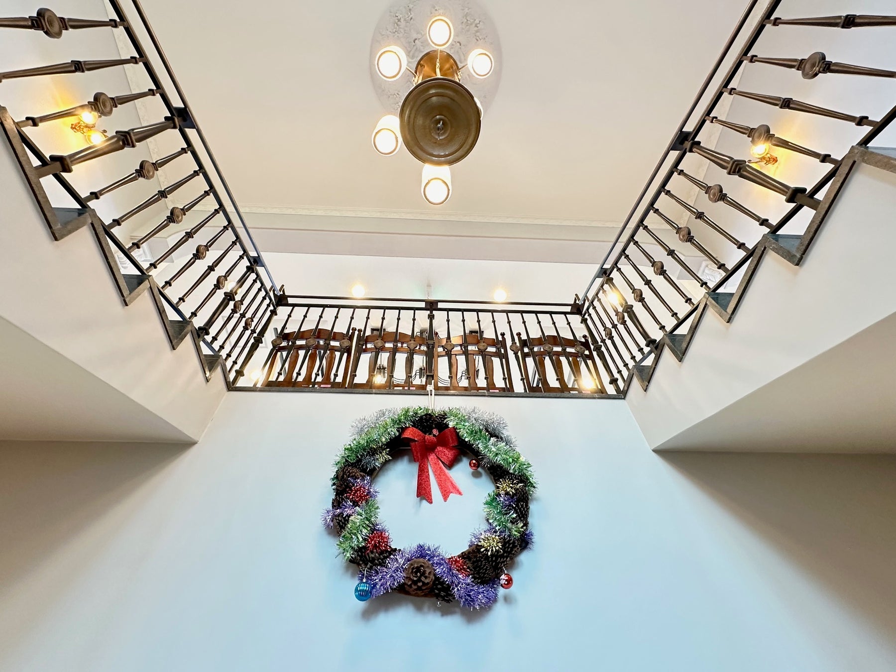 2024年11月19日(火)~12月25日(水)の間、湖畔展望館の階段付近にて、「クリスマスツリー」と「クリスマスリース」を展示しています。