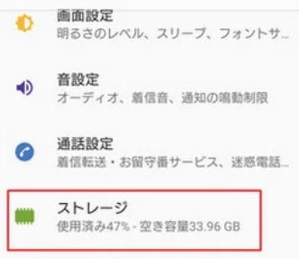 Step1: 設定アプリのメニュー内にある「ストレージ」をタップします。
