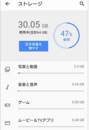 画像や動画などにより端末のストレージが圧迫されてしまうと端末の動作が鈍く担ってしまうことがあります。これによりタッチパネルが反応しないと思うほどに動作が鈍くなってしまっている可能性があります。一度ストレージの容量を確認し、容量の重く不要なファイルを削除するなどし、ストレージを整理してみましょう。