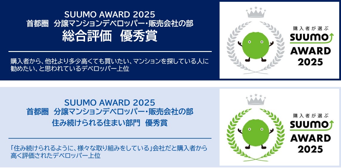 新築マンション購入者の満足度調査「SUUMO AWARD 2025」(首都圏版)「総合評価」で優秀賞受賞