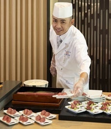 贅沢!地元の知多牛の鉄板焼きに、目の前で握るまぐろのにぎり寿司!揚げたてサクサクの天婦羅とおせちでお正月気分を盛り上げよう♪