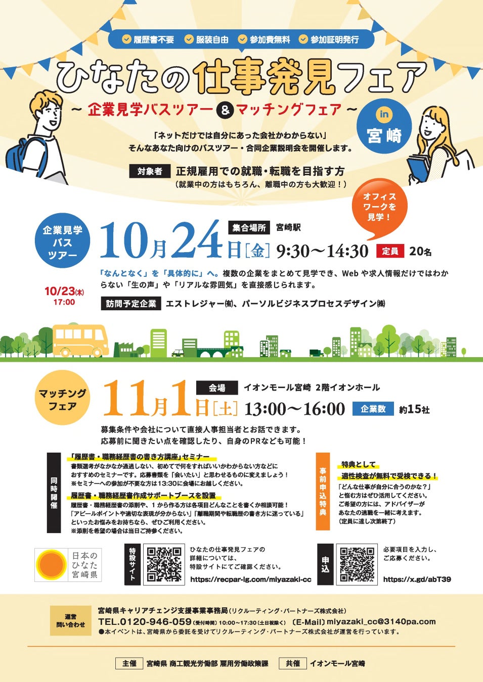 【参加者募集!】「ひなたの仕事発見フェア~企業見学バスツアー&マッチングフェア~」を開催します!