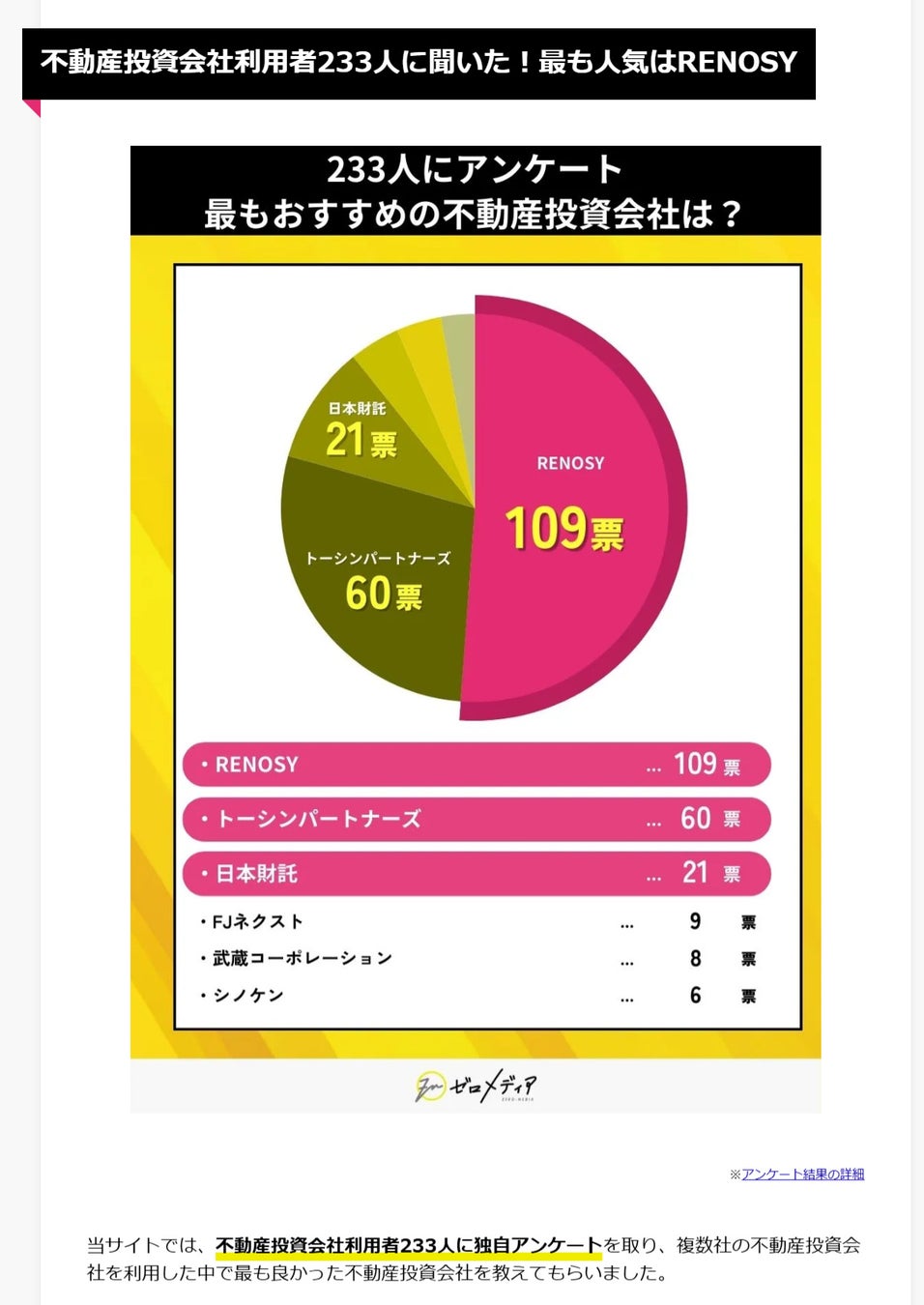 当メディアでは記事制作にあたって、主観に偏らずユーザーが本当に役に立つコンテンツ作りを意識しています。そのために、実際のユーザーにおすすめの不動産投資会社を調査。調査結果を元に本当に支持されている不動産投資会社を掲載しています。また、各社の口コミも募集し、一次情報だけではないリアルなデータで比較できるようになっています。