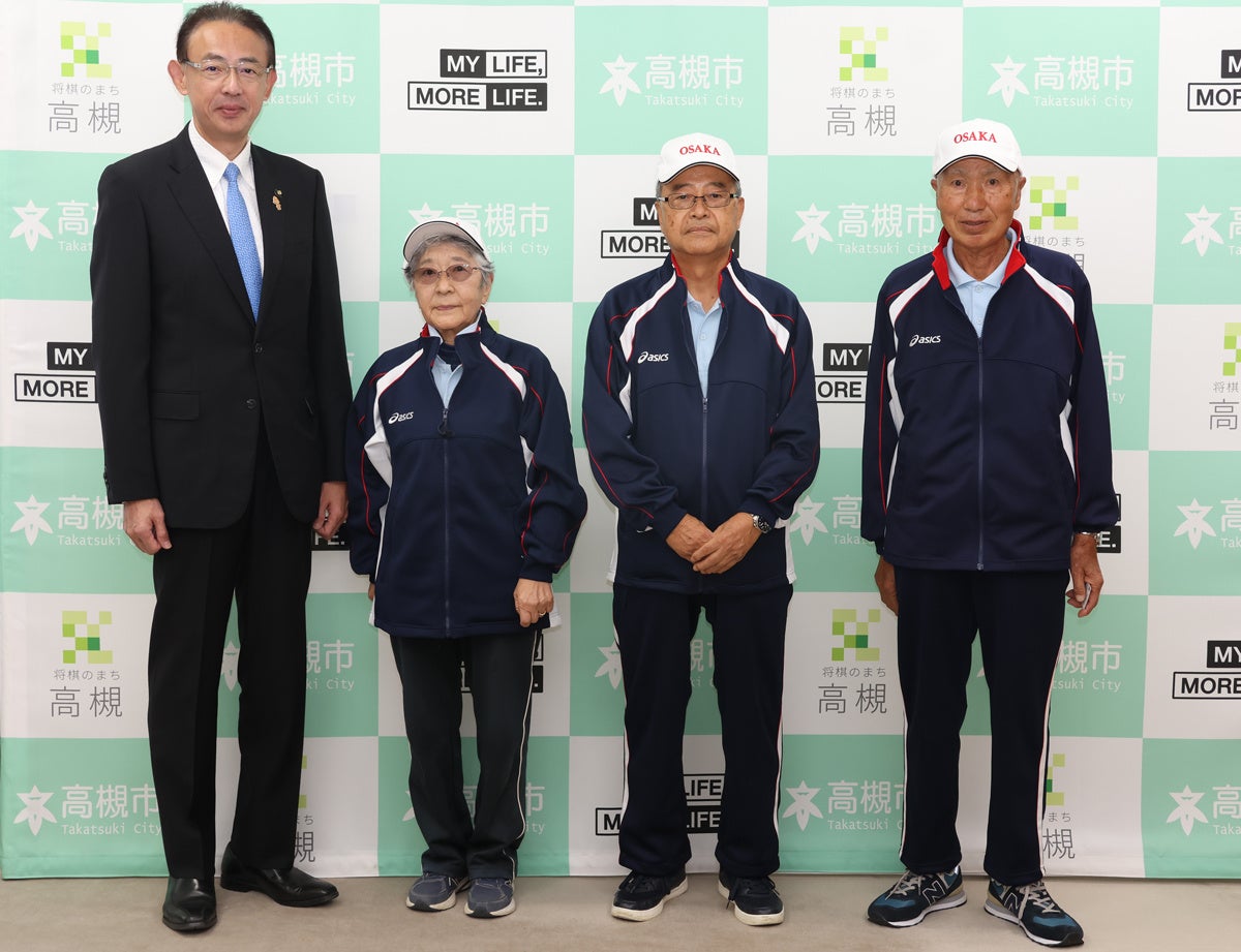 高槻市民3人がフランス発祥の球技「ペタンク」の全国大会出場を市長に報告