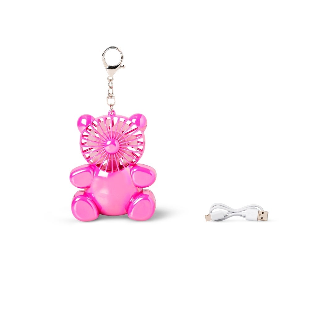 ピンクのクマのキーリング×手持ち・卓上の2WAYファン。バッグに付けて持ち運べる、ファッション性と実用性を兼ね備えたアイテムです。USBケーブル付き