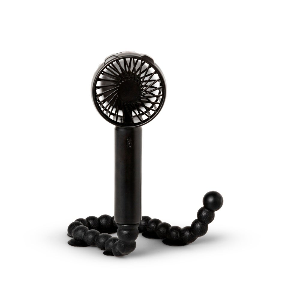 タコのような柔軟な脚と吸盤付きなので、日傘に巻き付けたりテーブルに固定したりと、さまざまなシーンで使用可能。設置場所を選ばず使えるファンです。USBケーブル付き