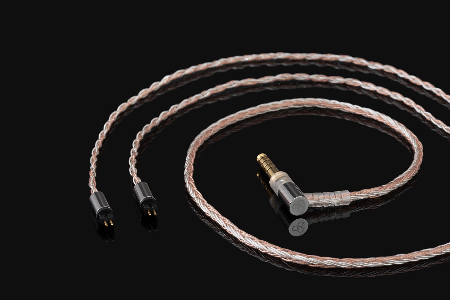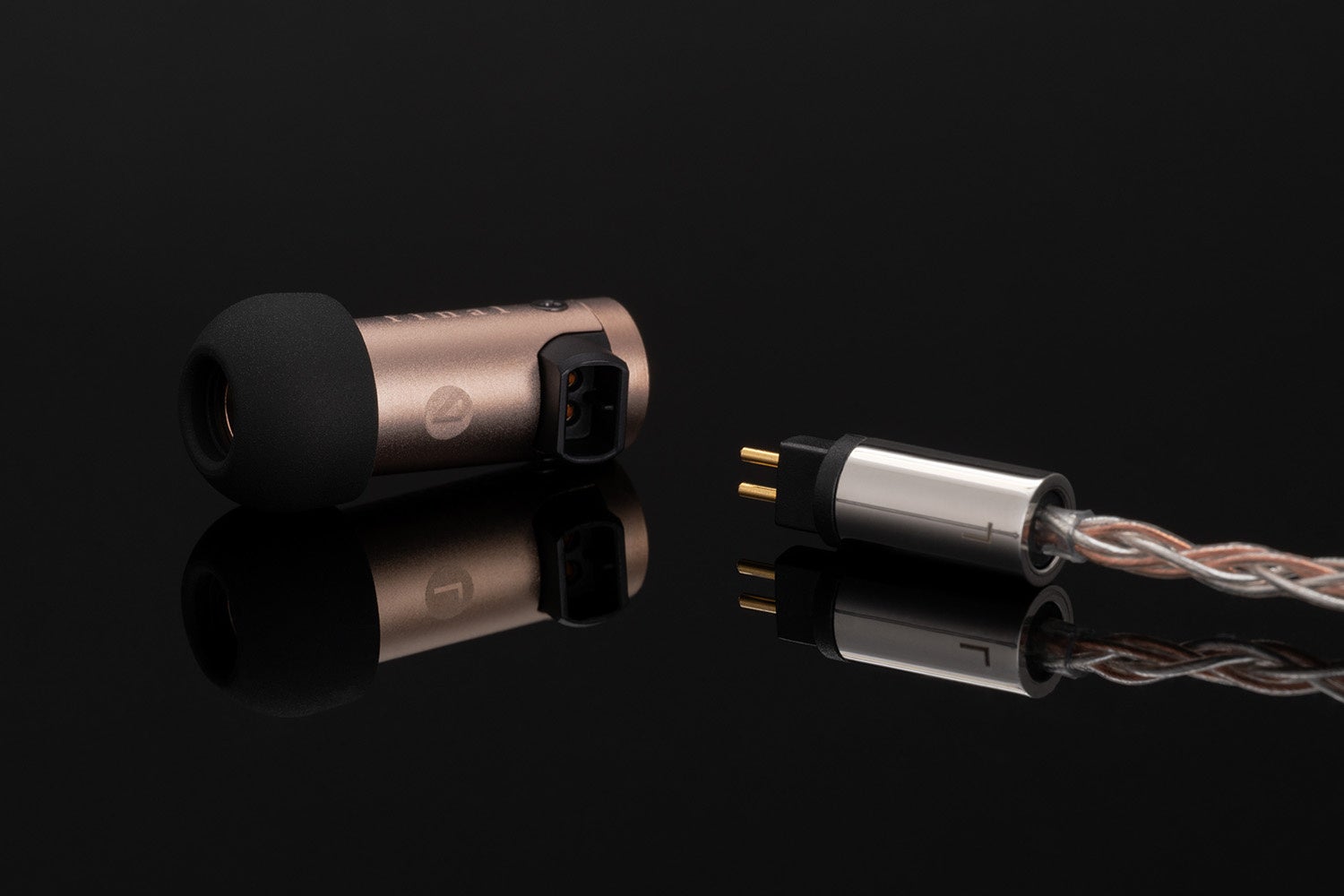 柔らかく取り回しの良い12芯の単結晶銅ケーブルを同梱。 2PINコネクターは高精度な自社開発品で、最も汎用性が高いとされるφ0.78規格を採用しています。