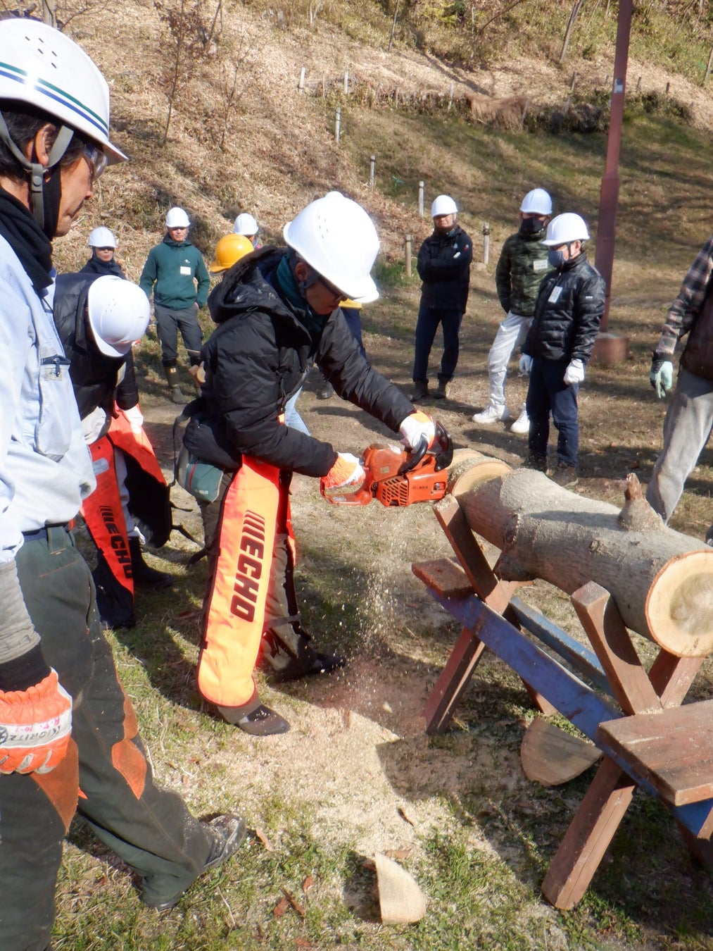 雑木林ボランティア講座は南平丘陵公園や谷仲山緑地等で雑木林の成り立ちや手入れの方法、道具の使い方など、雑木林を保全するための基本的な技術や知識を身につけていただき、日野市における「雑木林ボランティア」として活躍される方々を育成するものです。なお、講座に8割以上の出席者には、最終日に市独自の日野市雑木林管理士の修了証が渡されます。その後は、市内の雑木林ボランティア団体に所属していただき、「雑木林ボランティア」として活躍されることを期待しています。