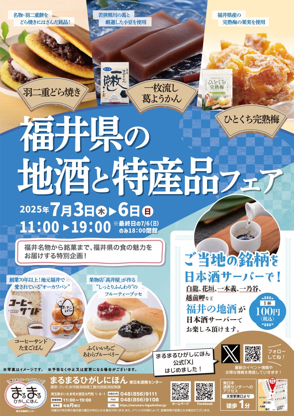 まるまるひがしにほんでは、7月3日(木)から7月6日(日)まで「福井県の地酒と特産品フェア」を開催します!