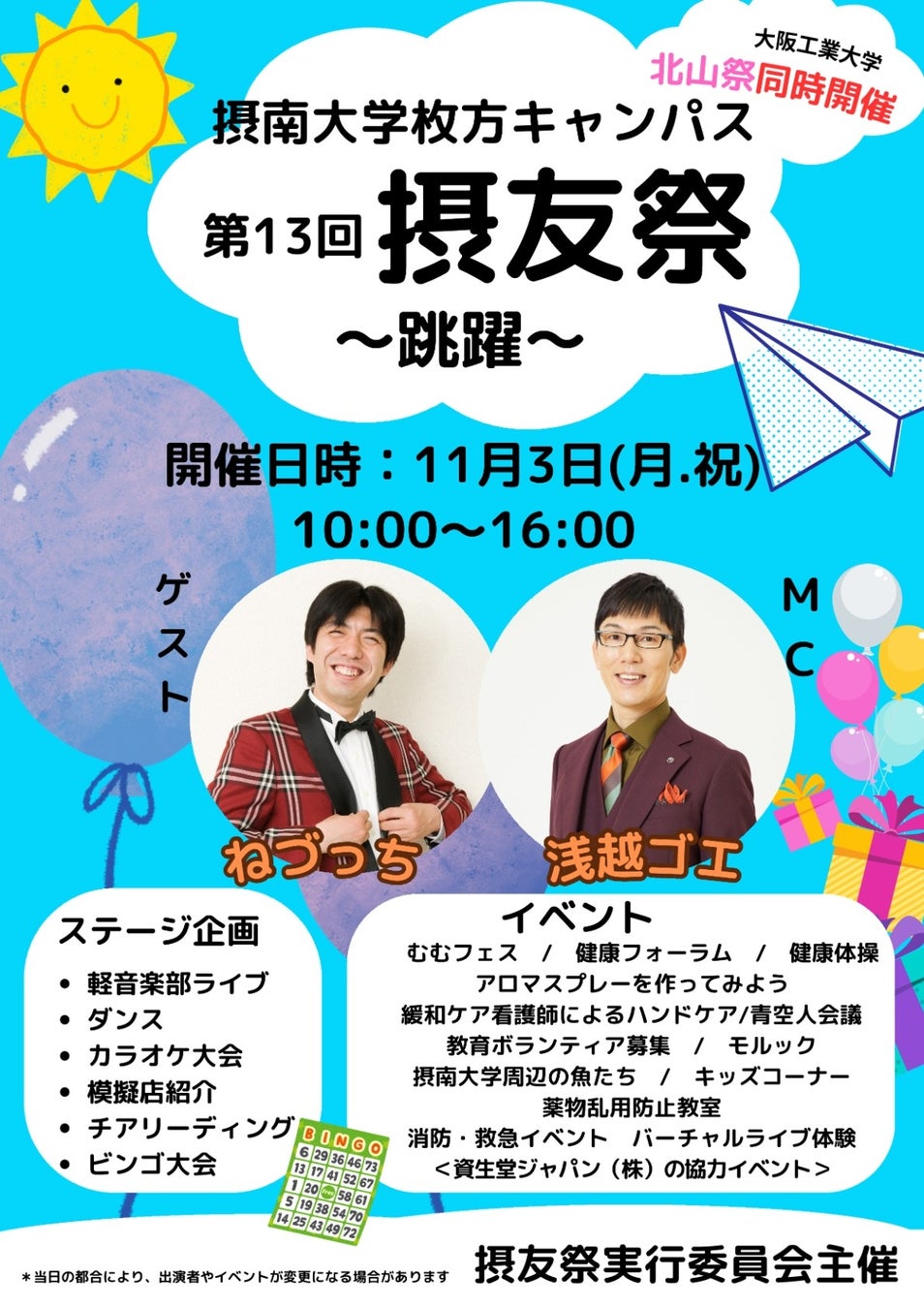 その他詳細:摂友祭実行委員会のInstagram:https://www.instagram.com/setuyuusai/