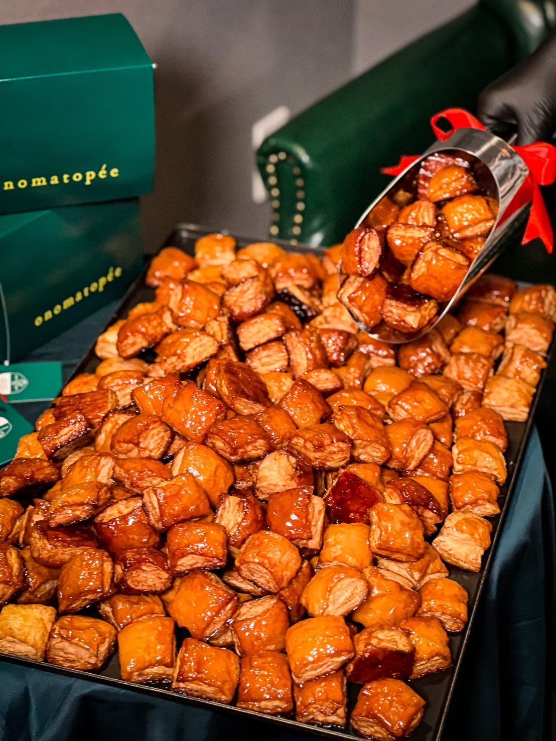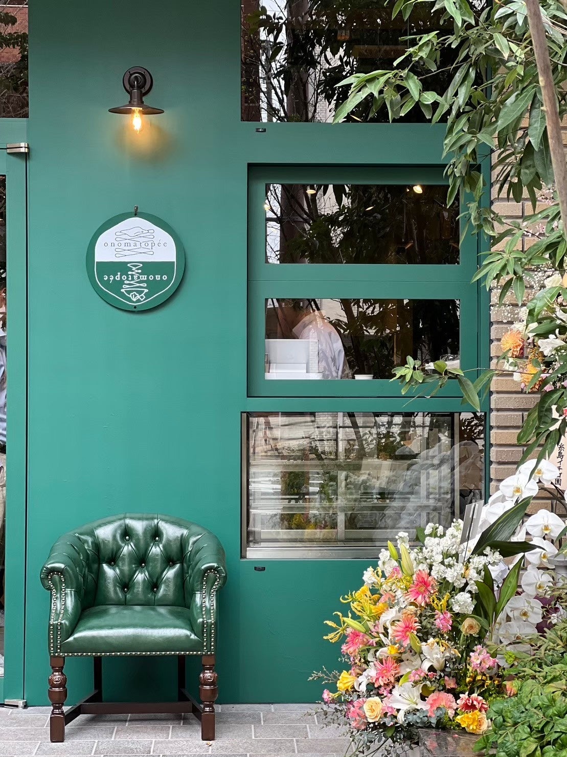 焼きパイとお菓子 onomatopée(オノマトペ)は、2024年3月28日に誕生した焼きパイとスイーツの専門店です。福岡中心部から少し離れた木々に囲まれた閑静な住宅地に店を構え、フランスの伝統色「リエール(グリーン)」をテーマにした、贅沢で落ち着いた空間が特徴です。